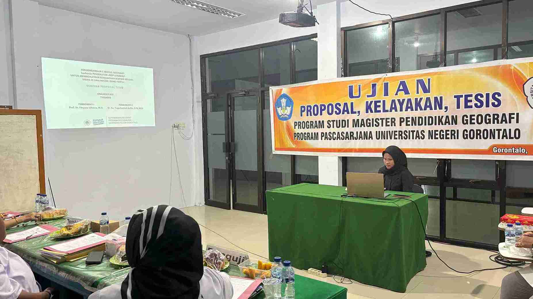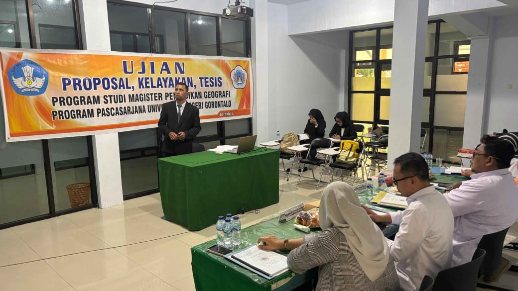 Gorontalo 25 September 2025, Semangat belajar dan inovasi terus berkobar di Program Studi S2 Pendidikan Geografi Pascasarjana UNG. Tiga mahasiswa angkatan 2024 berhasil menyelesaikan ujian proposal tesis di awal semester 3, di bawah bimbingan inspiratif dua guru besar DTPS Prof. Dr. Fitryane Lihawa, M.Si dan Prof. Dr. Sunarty S. Eraku, M.Pd.