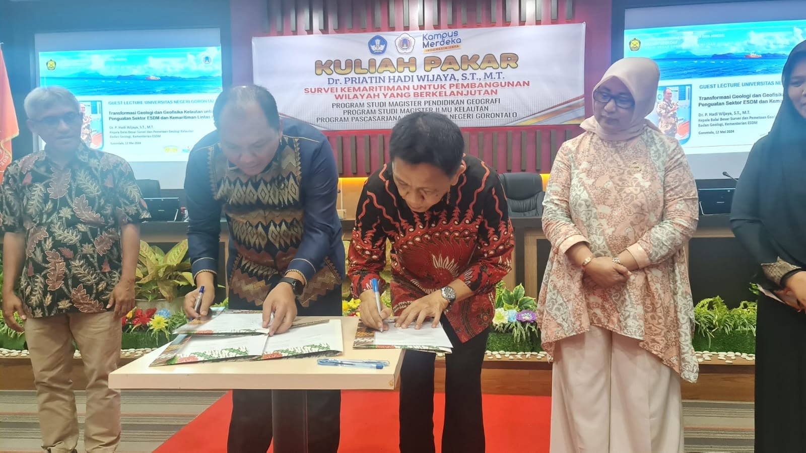 GORONTALO – Program Studi (Prodi) Magister Pendidikan Geografi dan Prodi Magister Ilmu Kelautan Pascasarjana Universitas Negeri Gorontalo (UNG) sukses menyelenggarakan Kuliah Pakar yang berkolaborasi dengan penandatanganan Letter of Agreement (LoA), sebagai bagian dari upaya peningkatan mutu akademik dan kapasitas sumber daya manusia.