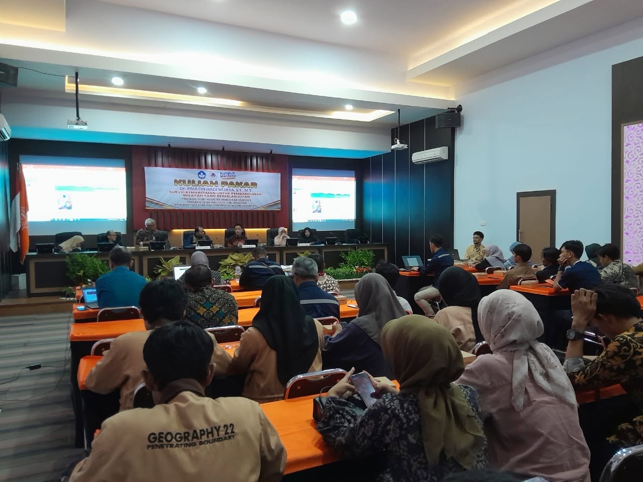 Acara bergengsi ini menampilkan narasumber ahli, Dr. Priatin Hadi Wijaya, S.T., M.T., yang saat ini menjabat sebagai Kepala Balai Survei dan Pemetaan Geologi Kelautan (Kementerian ESDM RI). Kuliah pakar tersebut fokus mengangkat topik penting: "Survei Kemaritiman untuk Pembangunan Wilayah yang Berkelanjutan."